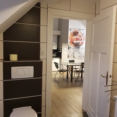 Sehr schöne und frisch renovierte, voll-möblierte Nichtraucherwohnung (s. Fotos) mit Emporen-Schlafzimmer, Esszimmer, kl. Nebenraum mit Kleiderschrank, Wohnzimmer und Küche in ruhiger Lage. Die Miete ist eine Pauschalmiete: Gas, Strom, Wasser, Abfall, Wlan etc. sind in der Miete enthalten!! Der Wohnbereich ist sehr groß und hell; in den kl. Nebenraum kann man gut ein Reisebett für ein Kleinkind stellen; die Küche ist neu, enthält eine Spülmaschine & alle nötigen Kleingeräte sowie Kochutensilien. Rollos für Schlafzimmerfenster vorhanden. Weitere Informationen: neovital-versand/ferienwohnung-puja Wlan frei vorhanden: detaillierte Informationen finden Sie in unserem Infoordner in der Wohnung. Es gibt einen kleinen Abstellraum mit allen nötigen Sachen wie z.B. Bügeleisen, Bügelbrett, Wäscheständer, Staubsauger etc. Waschmaschine/Trockner ist im Keller zur Mitbenutzung vorhanden. Waschmaschine und Trockner dürfen max. 2x pro Woche benutzt werden. Beides ist im Keller vorhanden. Bettwäsche, Handtücher und Fön werden kostenlos gestellt. Die Größe der Wohnung beträgt ca. 75 qm. Alle 2 Monate findet eine kostenlose Reinigung statt Bei Bedarf können auch Fahrräder gegen eine Gebühr 3 EUR pro Tag / 15 EUR Monat gemietet werden. License number 002-2-0014870-22