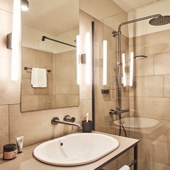 Do you like to show size and are you aware of your uniqueness? That's exactly how our Primehood works. The most exclusive apartment even has its own roof terrace for that perfect penthouse feeling. Let your gaze wander over Winterhude and to the city park while dinner is simmering in the kitchenette. - Own roof terrace - Separate living and sleeping areas - bed: 1.80m - Kitchenette with dishes, microwave, fridge with freezer compartment and 2 induction hobs, some with dishwasher - Nespresso machine with tea function - Bluetooth built-in speakers - Philips Smart TV - phone - Safe - COR sofa bed in the living room - Small desk - shower room / toilet - Wardrobe with mirror The images are sample images. The apartment is furnished like this or similar.